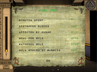 Mummy Puzzle(マミーパズル)は、古代エジプトを舞台にしたWindows PC用のマッチ3パズルゲームです。ルールはとても簡単で、一面に散らばったエジプトのお守りを入れ替えて同じお守りを3つ以上揃え消していくだけです。偉大なファラオ像建設のため、より多くのゴールド獲得を目指しましょう。